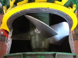 -Turbina Kaplan: Són turbines d'aigua de reacció de flux axial, amb un rodet que funciona de manera semblant a l'hèlix d'un vaixell. S'empren en salts de petita alçària. Les àmplies pales o àleps de la turbina són impulsades per aigua a alta pressió alliberada per una comporta.